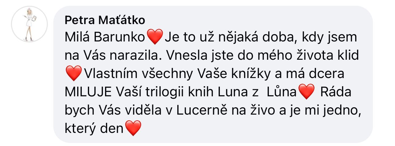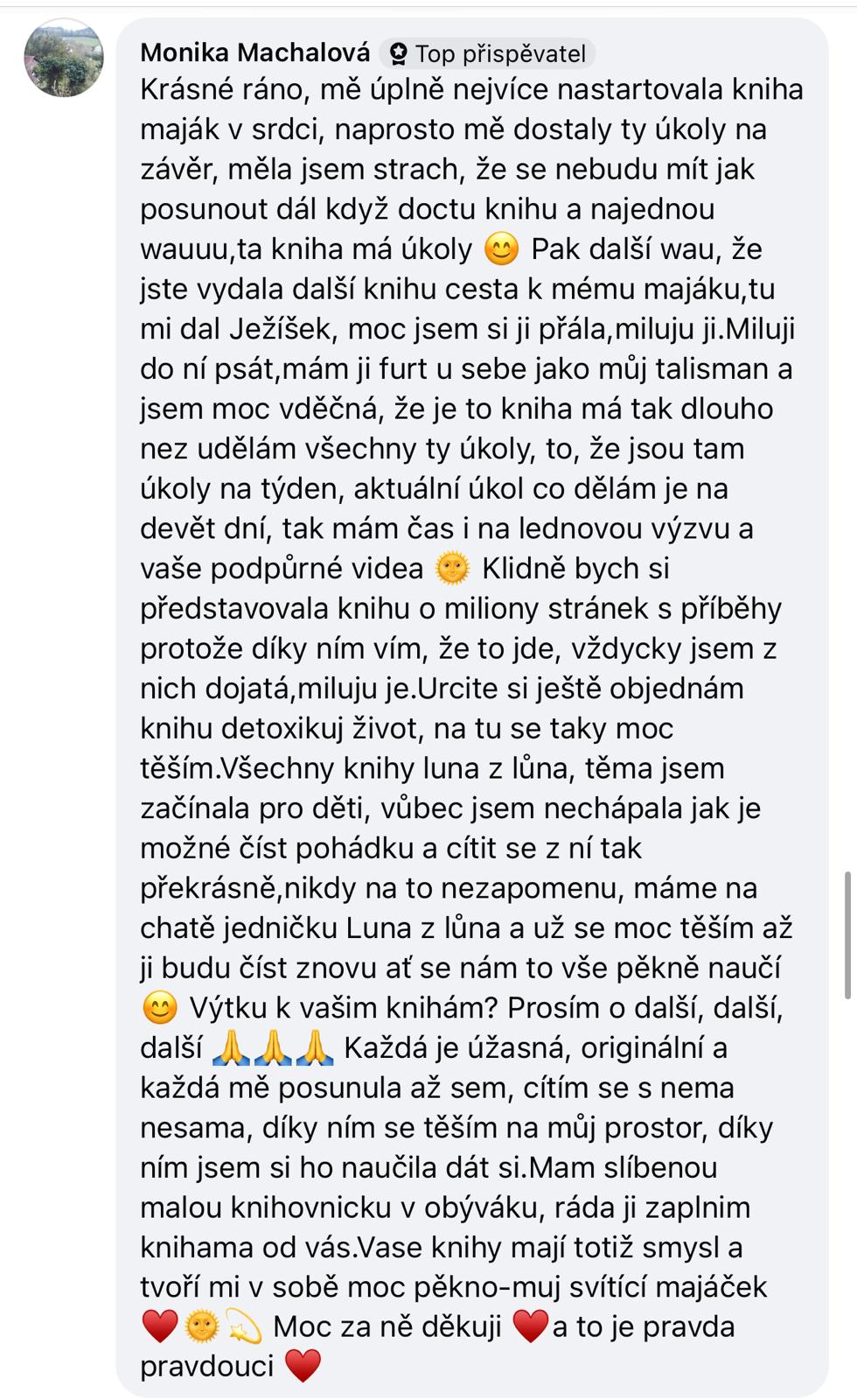 Třetí díl příběhů Luninky je tady a s ním i Pája. Luna, Emma a jejich přátelé. Pevně věřím, že díky ,,luninkovské" knižní sérii budou mít rodiče a jejich děti důvod víc společně komunikovat a začnou společně vytvářet to, po čem touží. Díky příběhu, který je zasazený do naší běžné doby věřím, že si děti možnost kouzlit si svůj svět zamilují a díky tomu budou žít to, co chtějí a ne představy, které do nich implantuje okolí.