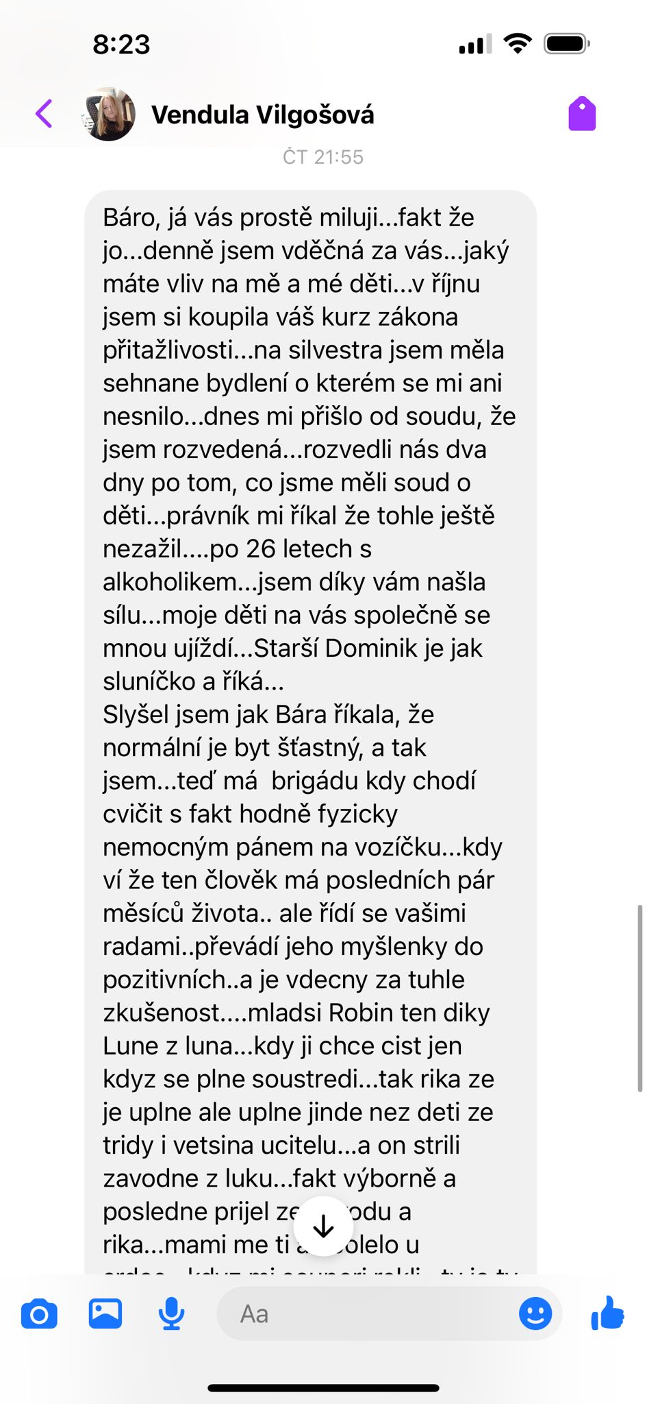 Bára je průvodkyní vědomým životem, mentorkou a spisovatelkou, která pomáhá lidem objevovat jejich vnitřní sílu a odvahu žít autenticky. Je autorkou sedmi knih, které čtenářům otevírají nové perspektivy. Na vědomých kempech, které pořádá od malebného Obříství u Prahy až po exotický Vietn.am, vytváří prostor pro hlubokou osobní proměnu. Prostřednictvím projektu Detoxikuj život propojuje komunitu lidí, kteří touží žít vědomě a tvořit realitu v souladu se svým nejlepším já. Ať už na živých přednáškách v Praze, Olomouci či na Slovensku, nebo v online prostoru, kombinuje praktickou moudrost s intuitivním vedením. Její práce překračuje hranice tradičního osobního rozvoje – otevírá brány k životu, kde duchovno není teorií, ale každodenní zkušeností, a kde každý může objevit svou vlastní cestu k radosti a vnitřní svobodě.
